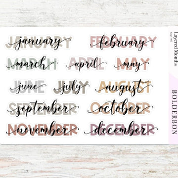 Add a touch of style and simplicity to your planner with our Layered Month Stickers. Designed to perfectly fit your month pages, these stickers make it easy to label each section with a clean, polished look.